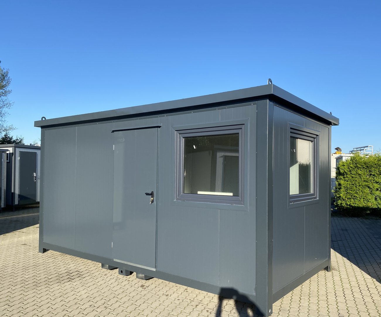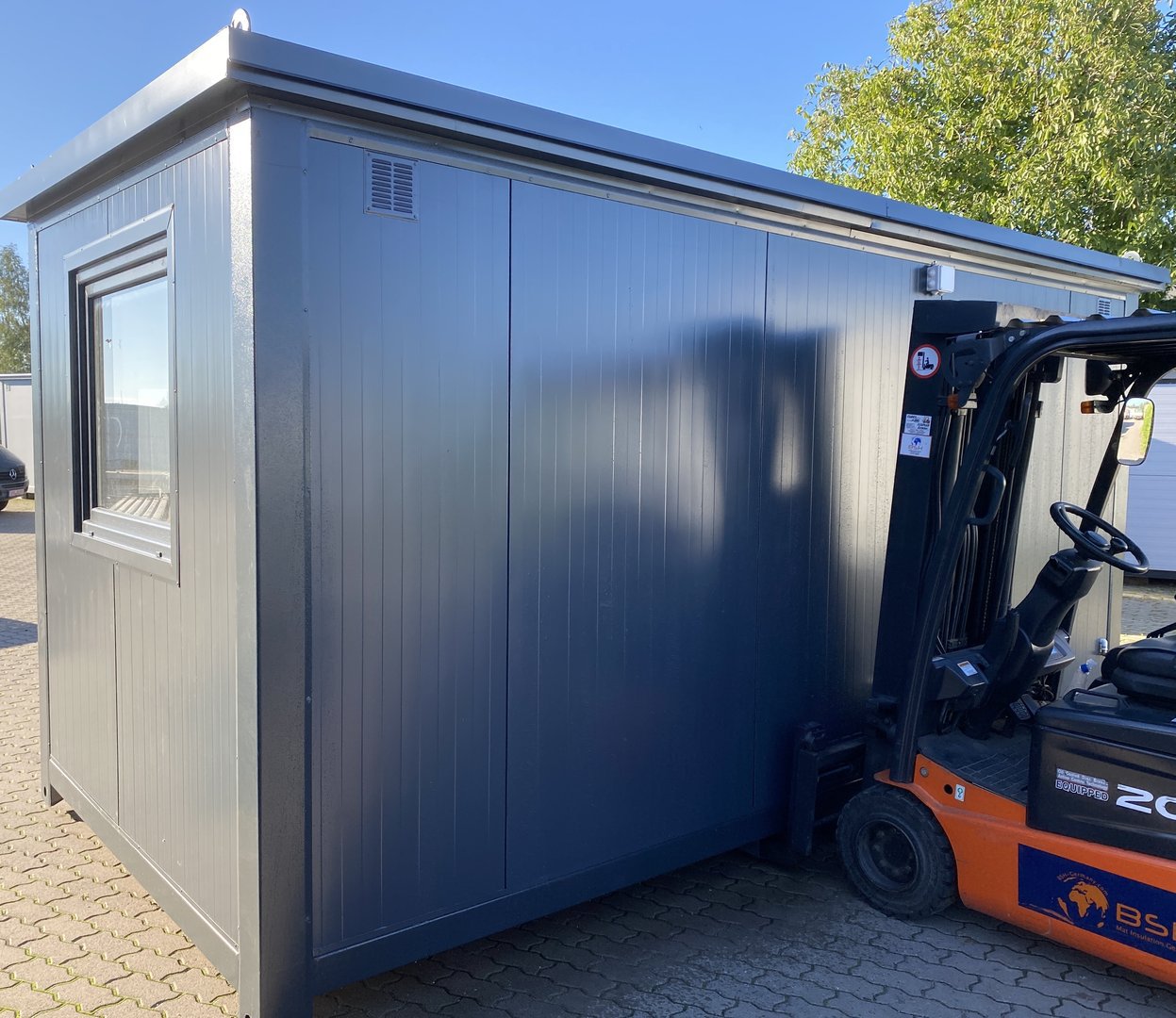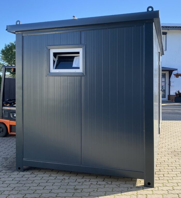 Container oficina 5×2,4 m con baño privado y ducha – Aislado completamente, instalación eléctrica 400V completa. Ideal para obras y uso comercial.