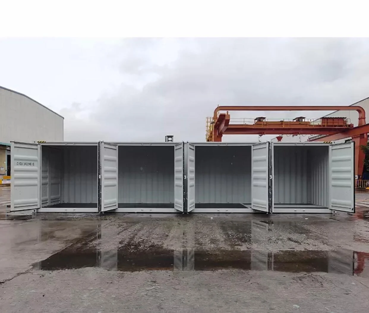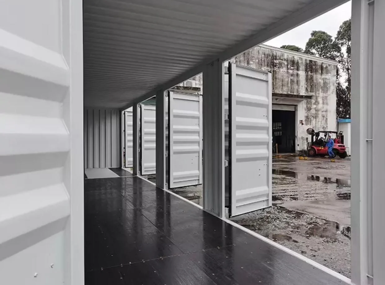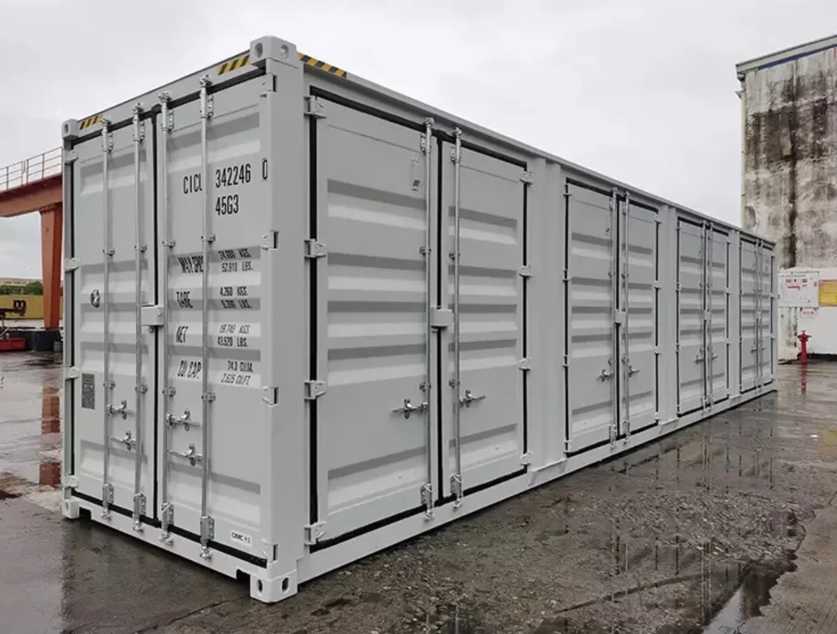Puertas laterales de apertura completa a lo largo del lateral del contenedor.
