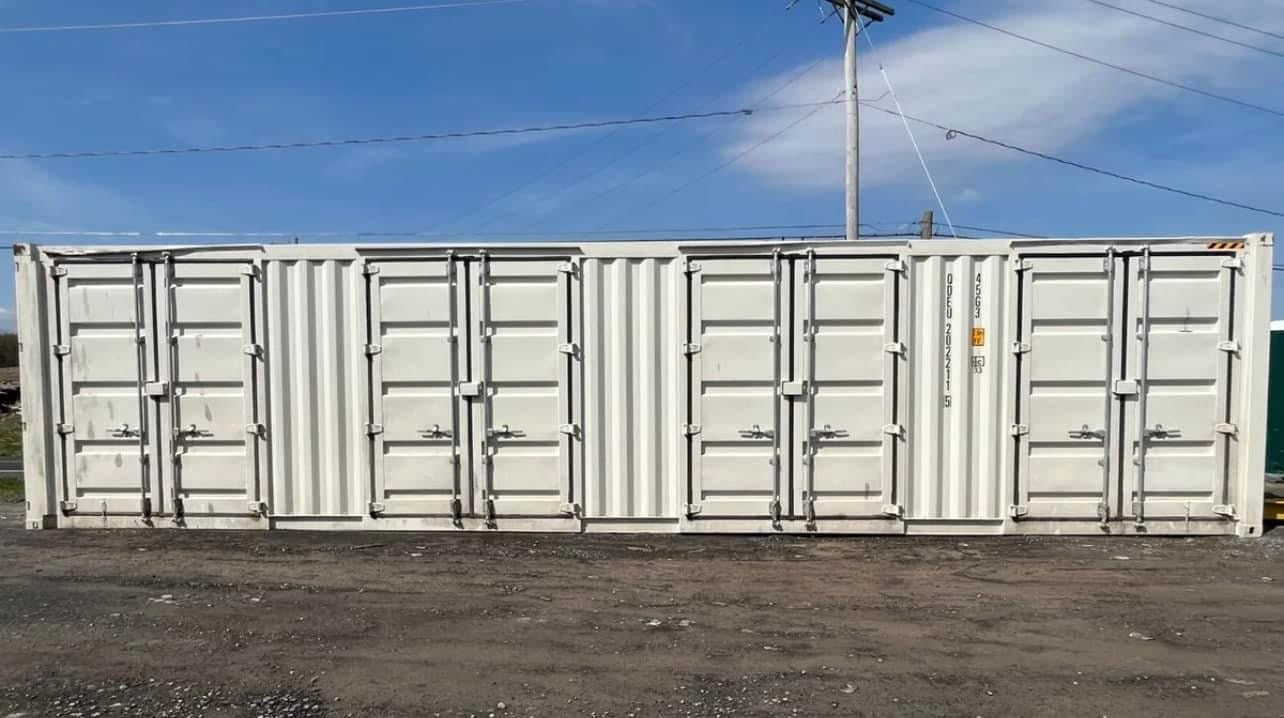 Este contenedor High Cube de 40 pies se encuentra en estado casi nuevo, ya que solo ha realizado un viaje («One-Trip») desde China a EE. UU. Su característica más destacada son las 4 puertas laterales separadas en el lado largo, que, unidas a la puerta trasera estándar, proporcionan un acceso sin precedentes y una flexibilidad total para la organización del espacio interior.